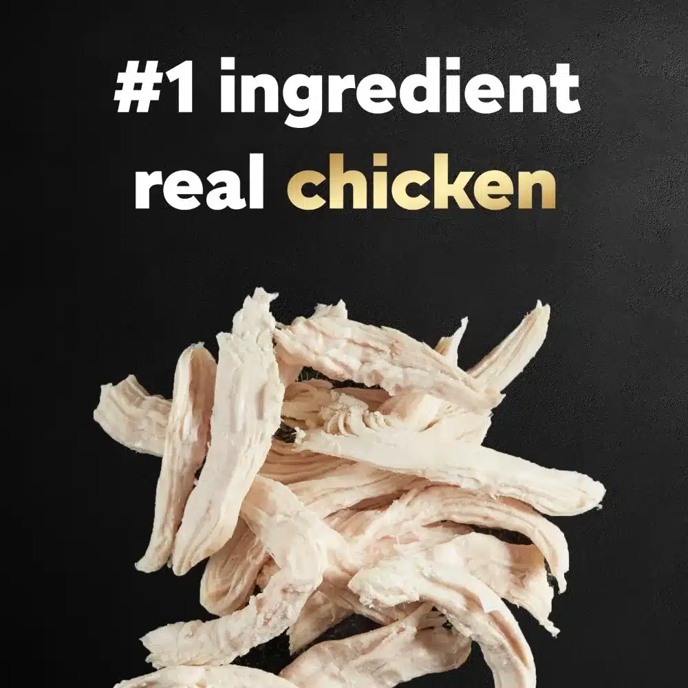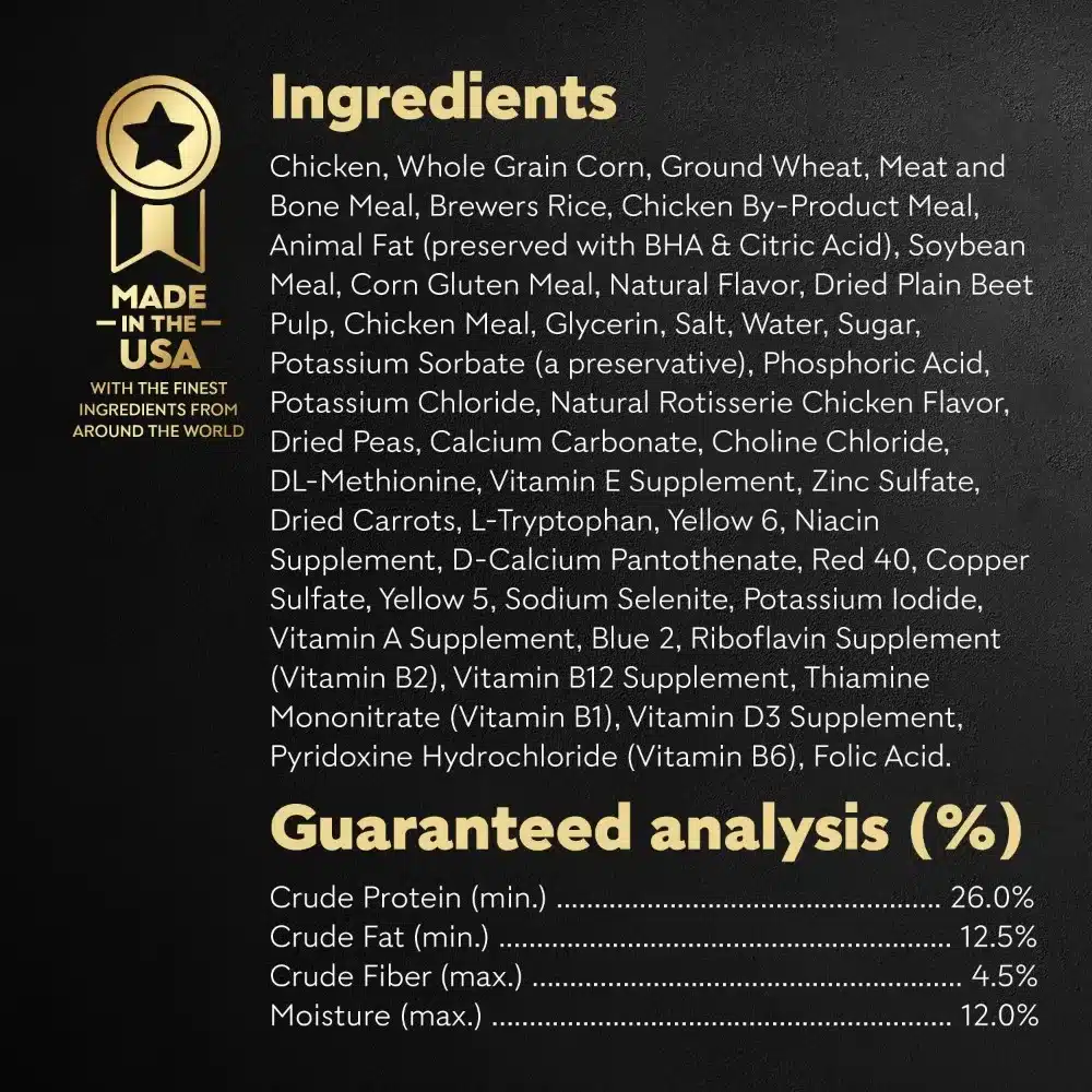 - Complete and balanced meal made with tender pieces that are easy to chew and crunchy kibble.