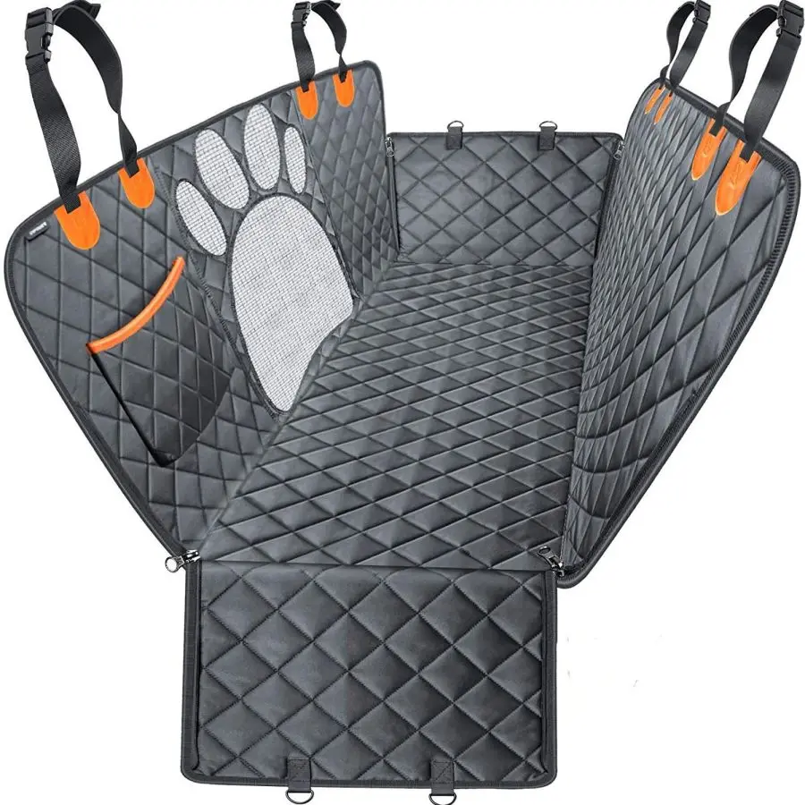 Dog Car Seat Cover for Back Seat, 100% Waterproof Dog Car Hammock with Visual Mesh Window and Side Zipper Car Seat & Door Protec