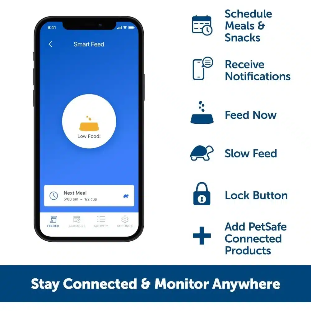 - FEED YOUR PET WITH OUR APP: Use the My app to monitor your pet’s meals from anywhere; app requires an iPhone or iPod device iOS 12.0 or later or a compatible Android smartphone 9.0 or later